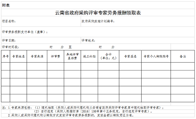 云南省政府采购评审专家劳务报酬支付暂行办法