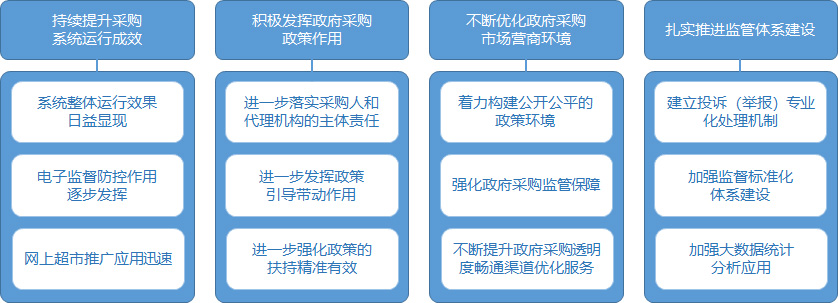 政策制度体系覆盖政府采购预算管理、需求管理、政策功能实施、采购执行过程管理、监督管理等各个方面,建立起采购文件、合同文件、信息公告、档案材料等一系列标准范本体系,确立了依法采购的市场规则,有效规范了政府支出行为和政府采购市场交易秩序。