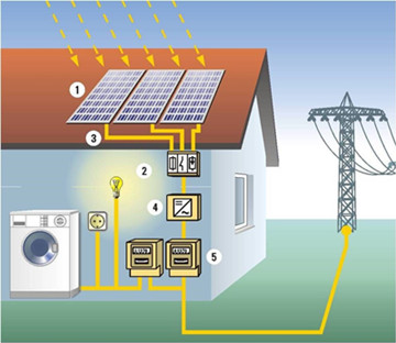 ① 光伏组件 ②开关/保护/防雷 ③电缆 ④并网逆变器 ⑤电表